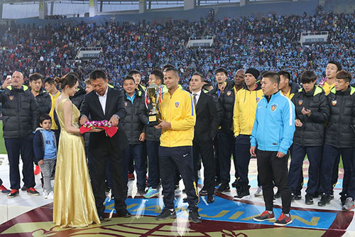 权健足球队冲超成功 全体队员获冲超功勋奖(2)