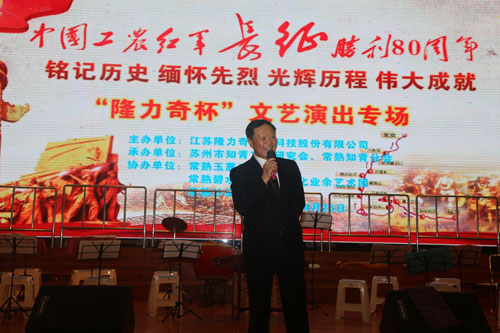 纪念中国工农红军长征胜利80周年文艺汇演隆重开幕,董事长徐之伟发表现场致辞,对各位知青人士能够在隆力奇欢聚一堂表示欢迎,他在致辞中提到中国工农红军长征胜利成果已经过去80周年了,但是历史永远铭记伟大光辉的胜利,隆力奇要学习与继承红军艰苦卓越的长征精神,为民族事业的的发展添砖加瓦。