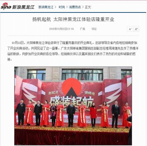 多家媒体报道太阳神黑龙江形象分公司开业
