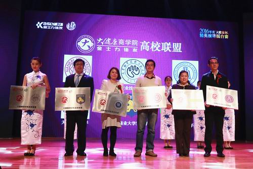 除精彩的比赛,现场还举行了高校联盟授牌仪式。金士力佳友与天津高校学府开展深度合作,成立“大健康商学院高校联盟”,吸纳高校精英人才,解决大学生就业难题鼓励并协助大学生创新创业,提高大学生健康保健理念,普及大健康教育,提高全民健康意识。此外,本次比赛售票所得票款全部用于慈善事业,于现场全部捐献给天津市河东区特殊教育中心。