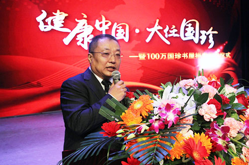 启动仪式在《和谐中国》盛大的歌舞表演中拉开序幕。谢建君委员致开幕辞,他倡议大家在积极履行“自立立他 德行天下”这一新时代核心价值观的同时,用德行善举积累精神财富。董副总代表北京国珍爱心基金会向中国青少年发展基金会捐赠100万元用于“国珍书屋”公益项目,同时,谢建君委员代表奉献爱心的全体新时代人向山东省青少年发展基金会捐赠其中第一批共计10万元的“国珍书屋”公益项目图书,这些图书将捐赠给山东省内需要书籍的孩子们。随后,董副总表示,100万“国珍书屋”专用款项捐赠活动是新时代人以实际行动切实履行社会责任、支持祖国教育事业发展的具体体现,新时代健康产业集团作为央属企业,将继续秉承家国情怀,崇德厚德,以无私的大爱回馈社会,让爱和温暖永续相传。