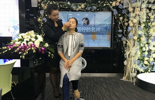 专业美容师现场为同学们展示职场仪容