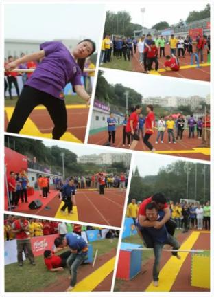 在运动员及裁判员宣誓后,由中脉科技各个中心组成的6个方阵表演了《啦啦操》《健康歌》《年度神曲》《广播体操》等节目。本着“趣味”二字,此次运动会在比赛之外,更增减了不少乐趣。比赛项目由毛毛虫竞速、财源滚滚、蛟龙出海、众星捧月、指压板障碍赛、三向拔河等项目组成,这些项目竟有技术上的PK,更有情趣上的比拼。