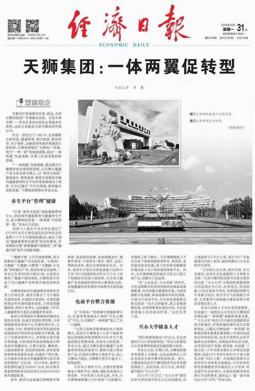 “打造‘泰济生医院’国际健康管理中心,形成现代健康管理大健康养生平台,是天狮集团发展‘一体两翼’中的重要一翼。”李金元介绍说。