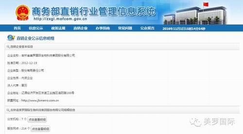 2016年10月31日,国家商务部直销行业管理信息系统公示“吉林省美罗国际生物科技集团股份有限公司调整服务网点”,分别在广东、广西、山东新增直销区域总计58个。至此,公司的直销区域在以上三省得以进一步扩展。公司将严格按照国家规定尽快完成此次新增直销区域的相关工作,确保早日在上述新增直销区域开展直销活动。