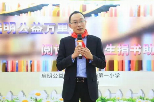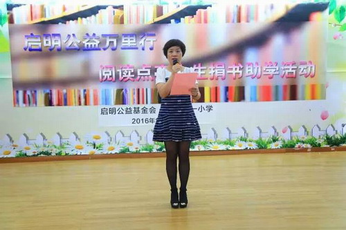 捐书仪式上,江军介绍了捐书助学活动的背景,这是启明公益基金会为努力建设书香社会而开展的一项长期性的公益文化活动,基金会致力于扎实推进全民阅读工作,倡导全民阅读特别是在青少年学生中形成良好的阅读习惯,并且提出了对学生的希望。