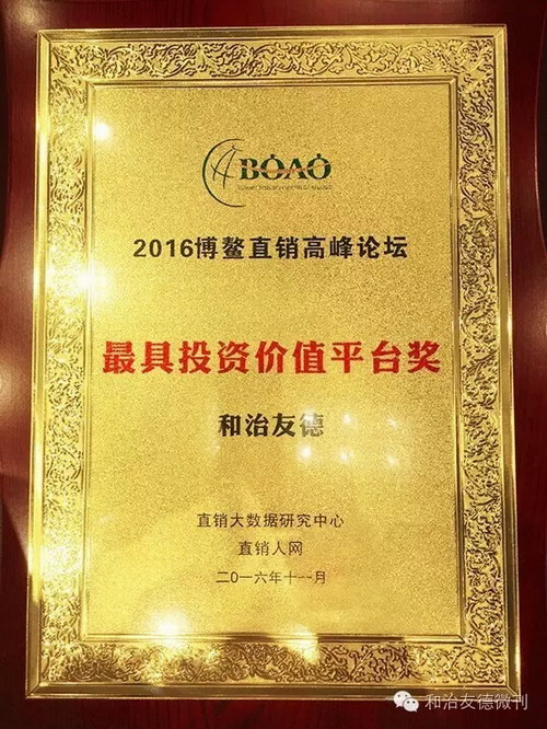 和治友德参加博鳌直销论坛获投资价值平台奖