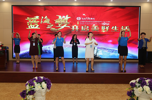 在现场伙伴们的热切企盼和掌声中,康尔执行副总裁王评女士登台致辞,并和博奥颐和特派代表卜笑华卜总一起为