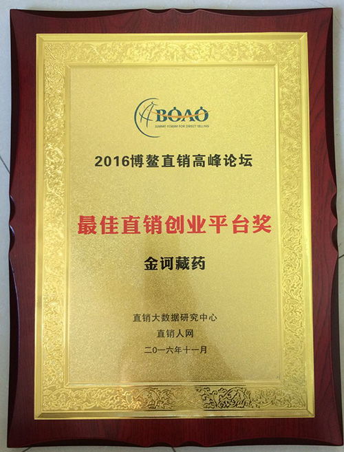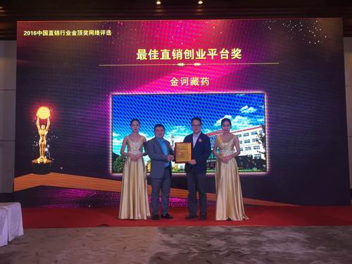 金诃藏药通过多年不断的探索、完善、发展,使这一古老的民族医药焕发出青春,为人类的健康事业做出了积极的努力,得到了社会各界的认可,在本届论坛上,金诃藏药以打造优质事业平台,弘扬藏医药,造福全人类为使命,以及藏医药健康产业的雄厚实力赢得“最佳直销创业平台奖”。