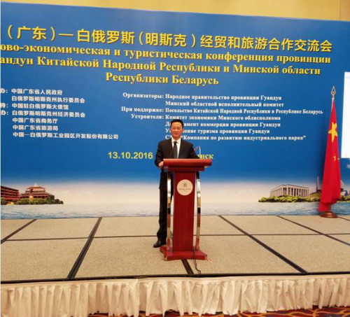 在本次经贸与旅游合作交流一行的开幕式上,招省长做重要讲话,讲话中,高度赞赏了中白两国的友好关系,介绍了两国领导人国事互访达成了一系列的合作共识,并较为详细的介绍了广东省的经济增长水平和对外贸易情况,表达了希望加强中白两国,特别是广东省和明克斯州的友好往来,在经贸、旅游等多项领域继续深化合作。中国政府提出的“一带一路”的经济发展战略,向处于落后或发展中国家提供良好的基建投资机会,对这些国家的基础设施建设具有重大推动作用,是用诚意邀请这些国家分享中国发展红利,对沿途国家而言是重大利好政策。另外,在经济危机的背景下,中国经济长期保持中高速增长,一直充当了带动全球经济发展的“火车头”。但在高速、缺少详细统筹规划的经济发展下,中国的发展也遇到瓶颈。中国需要将自身的产能优势、技术与资金优势、经验与模式优势转化为市场与合作优势,实行全方位开放的一大创新。中国与“一带一路”途经国家通过贸易和经济的紧密沟通合作,可以与“一带一路”国家增进了解,建立良好互信关系,会提升途经国家经济往来活力,做到贸易自由化,最终形成一个欧亚大陆经济共同体,不仅解决了各个国家的实际内需,也解决了各个国家的对外出口问题、就业问题、社会安定以及技术交流问题。中国可以通过一带一路进一步扩大在世界上的影响,从而增强政治话语权,具有深远的政治战略意义。
