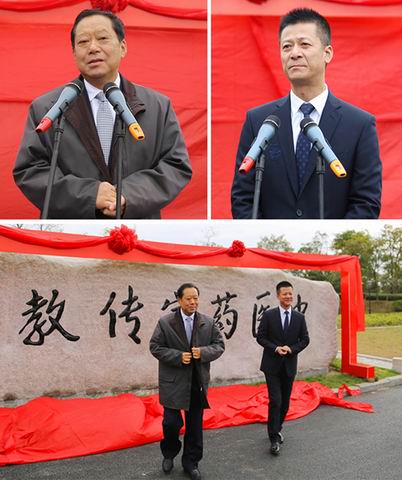 全国政协副主席、农工民主党中央常务副主席刘晓峰与权健集团董事长束昱辉共同为“农工民主党中医药宣传教育基地”揭牌