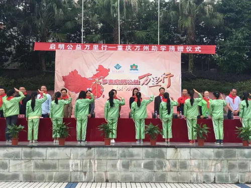 黄五一副主席介绍了万州区教育和经济情况,他说,“近年来,我区加快产城融合步伐,经济社会快速发展,但是仍有部分地方、家庭经济比较困难。启明公益基金会不忘农村教育,不忘农村孩子,真正为我们的农村孩子在学习上、生活上解了燃眉之急,为很多农村家庭送来了精神上的莫大安慰。”胡家海副主任表达了他对师生们殷切的期待,他希望龙沙小学的师生怀抱一颗感恩之心,努力学习、勤奋工作,珍惜优越的学习环境,热爱自己的学校,向更高目标不懈努力,争取以更优异的成绩来回报启明公益基金会和各级领导的关心、支持,办好人民满意教育。