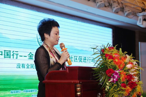 金士力佳友华南区销售总监李莉清在致辞中讲到,目前,大健康中国行活动已在天津、北京、广州、沈阳、石家庄等城市开展了70多场,在取得显著效果的同时,更得到了地方政府和人民群众的广泛好评。随后,李莉清总监向广东德庆站的志愿者代表们授旗并寄语,希望活动从这个家传户晓的“龙母故乡”扎根发芽,把大健康理念通过大爱之地辐射至全国,为全面推进“健康中国”贡献力量!