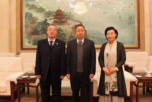 胡国安董事长与中共湖南省委宣传部副部长、省文明办主任刘进能,2014年度感动湖南人物罗美元女士合影