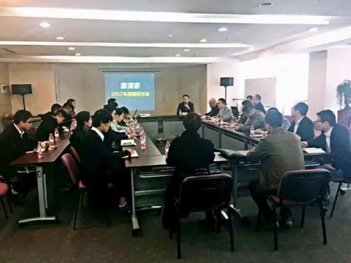 谋划新发展,积聚新能量,开启新征程。2016年11月10日,康满家2017年战略研讨会在杭州康恩贝大厦成功召开。CEO罗梓豪先生、副总经理钟卫芳女士、副总经理金龙先生以及公司所有高管汇聚一堂为康满家2017年发展战略作规划与部署。
