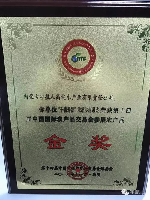宇航人沙棘果浆获中国国际农产品交易会金奖