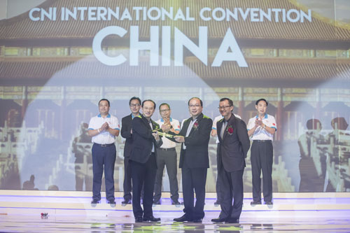 CNI印尼总裁向大中华区总裁白镜亮交接CNI2018国际峰会主办权
