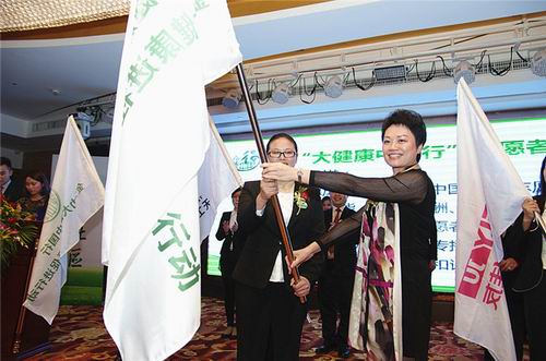金士力佳友华南区销售总监李莉清在致辞中讲到,目前,“大健康中国行”活动已在天津、北京、广州、沈阳、石家庄等城市开展了70多场,在取得显著效果的同时,更得到了地方政府和人民群众的广泛好评。随后,李莉清总监向广东德庆站的志愿者代表们授旗并寄语,希望活动从这个家传户晓的“龙母故乡”扎根发芽,为全面推进“健康中国”贡献力量!