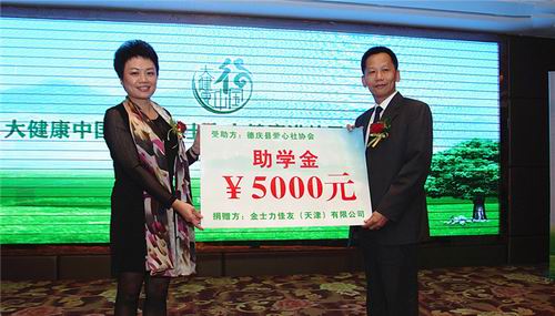 一直以来,金士力佳友积极投身于各项社会公益活动,现场金士力佳友华南区销售总监李莉清向“德庆县爱心社协会”的荣誉会长李金棠先生捐赠助学金5000元,以资助当地受助贫困学生持续就学。德庆爱心社副会长陈绮霞女士在讲话中感谢金士力公司把“大健康中国行”带到德庆,期待透过与德庆县爱心社协会的合作,让更多的社会热心人士共同参与爱心帮扶,共同推动公益事业的长远发展。