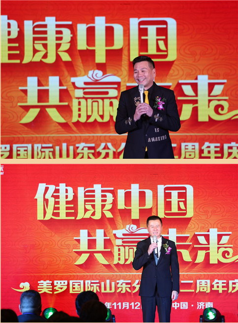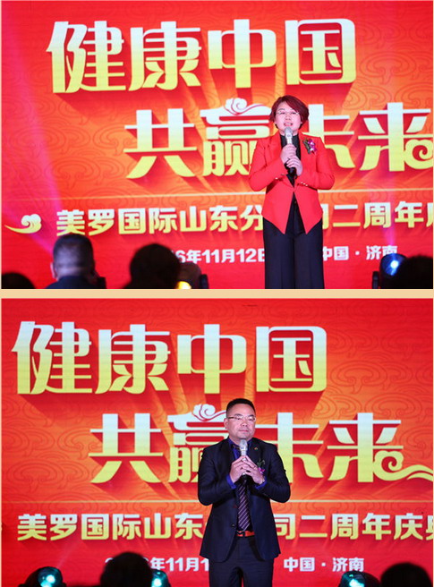 山东分公司周年庆典,受到了集团领导的高度重视,美罗国际集团联合创始人夏历董事长、于智慧总裁亲致贺信,充分肯定了山东分公司一年来做出的骄人成绩和突出贡献,能够始终贯彻集团战略方针,牢牢地把握科学发展、创新发展、规范发展的方向,为经销商提供了全方位的服务,为集团人品、产品两个品牌建设做出了贡献,确保了“三网联动”战略在齐鲁大地以及周边地区较好的实施,得到了地方政府的大力支持与充分肯定。同时对奋战在齐鲁大地的山东团队给予了高度评价,齐鲁大地市场团队抓住了国家“一带一路”建设和健康产业历史性机遇,发挥区域优势,朝气蓬勃,上下一心,团结协作,逐鹿中原,迅速占领山东市场的同时,快速向全国辐射,队伍不断发展壮大,成为一支能征善战的生力军,涌现出了一大批新的市场英雄,大步迈向高速发展新阶段。美罗国际全面实施“三网联动”战略以来,取得了突破性进展,全国各个市场发展形势喜人,直销业绩连续倍增,近千家连锁药房落地生根,令世人瞩目。属于美罗国际的“大美罗、大品牌、大资本、大发展、大未来”新时代已经到来。