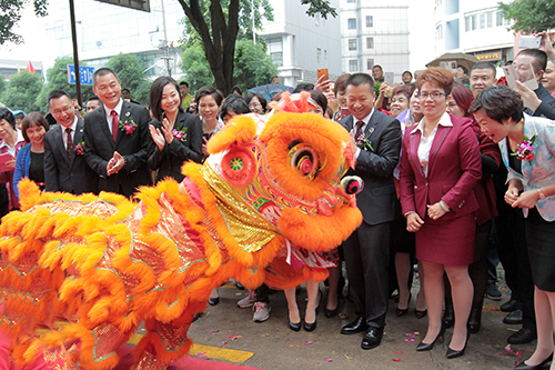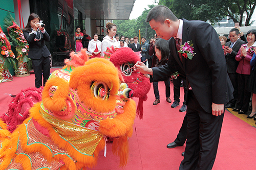 国内直销事业部副总经理罗力和广西分公司经理张雅杰为舞狮点睛