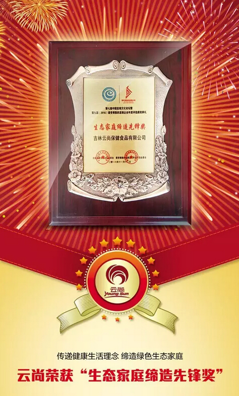 吉林云尚保健食品有限公司受邀参加了此次盛会,并荣获了“生态家庭缔造先锋奖”。