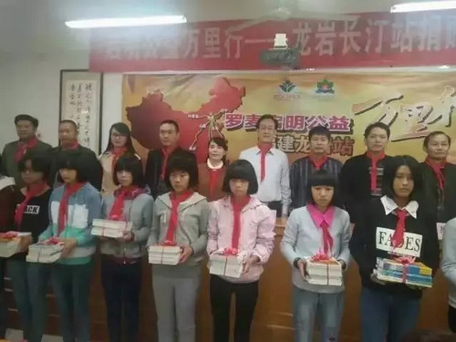启明公益基金会向龙岩市长汀涂坊中学、河甫小学共捐赠价值十万元的图书,丰富了学校图书馆藏书,促进了书香校园建设。龙岩市工商局副局长刘如旺,龙岩市工商局执法科副科长蓝建红,长汀县市监局副局长肖美华,北京罗麦科技有限公司福建分公司市场主管张敏、外事主管黄志雄,爱心志愿者代表张翰允及师生代表等人出席活动。