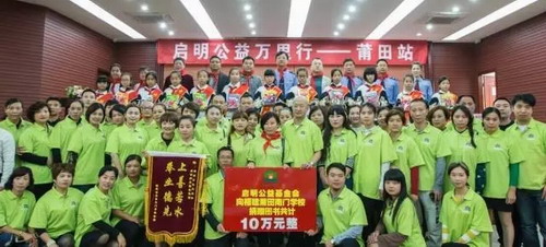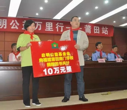 启明公益基金会向莆田市南门学校捐赠了价值十万元的图书,帮助其建设书香校园。北京罗麦科技集团福建分公司经理林映波,莆田市工商局办公室主任郭山,莆田市工商局竞争执法科科长郑志阳,莆田市工商局竞争执法科副科长林剑武,城厢区教育局副局长佘志敏,爱心经销商代表左志玲及师生代表等出席活动。