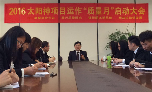 11月10日,在“筑高壁垒,决胜终端”战略思想的指导下,太阳神2016年物流运营“质量月”启动大会顺利召开,营销总部副总经理韩宗平、物流中心总监助理汪雄鹰及物流中心全体员工参加了本次会议。