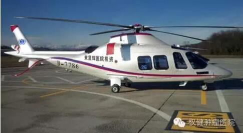 天津权健肿瘤医院购进意大利阿古斯特AW109型双发直升机一部,用于急救转运和药品配送,是中国首家配套世界先进直升机的医院。