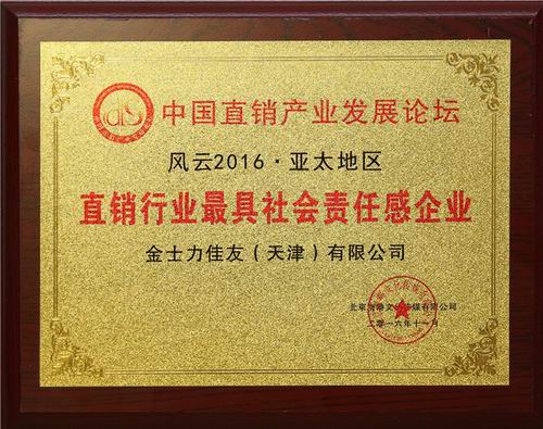作为直销行业重量级的最受尊敬的直销企业年度评选颁奖典礼,大会汇聚了国内和海外最具实力的直销企业、领导、团队、行业精英。会上,金士力佳友(天津)有限公司荣获“企业品牌文化建设成就奖”,金士力牌益生菌粉获评“2016最受市场青睐的消费产品”。