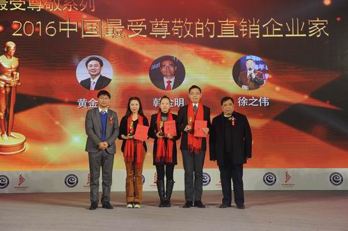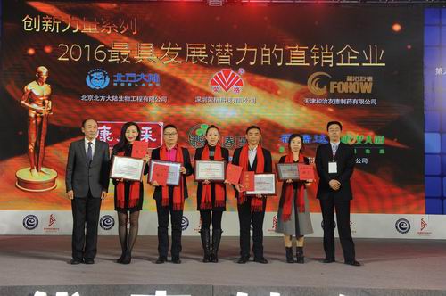 由中国直销研究院、中国直销文化论坛组委会、中国商业文化研究会、当代直销全媒体中心等组织联合举办的“第九届(2016)最受尊敬的直销企业年度评选颁奖典礼”于2016年11月11日-13日在北京万达嘉华酒店盛大召开。大会汇聚了媒体、市场、学界、国内和海外最具实力的直销企业、领导、团队、行业精英,天津和治友德制药有限公司董事长韩金明、副总经理郅群应邀参加此次活动,并用“2016最具发展潜力的直销企业”、“2016最具投资价值的直销企业” 、“2016中国最受尊敬的直销企业家”的嘉奖向市场充分验证企业的雄厚实力。