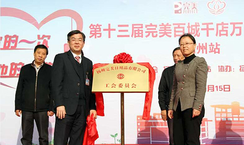 邗江区总工会主席夏向群、扬州完美总经理潘联顺共同为扬州完美成立工会进行揭牌,工会的成立也是扬州完美践行“博爱”精神的具体体现,进一步维护职工权益,促进企业发展。
