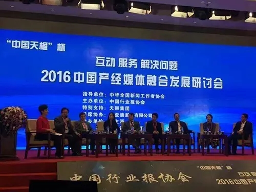 11月19日,由中国记协批准、中国行业报协会主办、天狮集团特别支持的首届“中国产经媒体融合发展研讨会”在北京湖南大厦宴会厅举办,中宣部副部长蒋建国、中国记者协会党组书记翟惠生、中国产业报协会会长姚军以及众多新闻媒体主管领导、国内权威产经媒体代表、知名专家学者以及产业企业代表参加了本次媒体盛会。受天狮集团李金元董事长的委托,天狮集团副总裁、集团财务中心总经理、投资发展中心总经理李佳凝女士,天狮集团副总裁张可先生,天狮集团品牌管理中心总经理李悦绮女士,天狮集团大中华区副总裁韩波女士代表天狮集团出席本次活动。