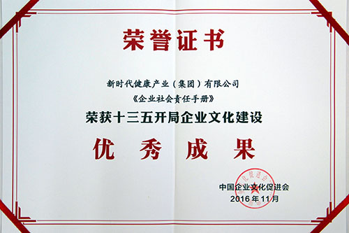 大会对公司的企业文化建设工作给予高度评价,公司的企业文化实践作为14个经典案例之一,写入大会工作报告并下发给全体会员单位。大会工作报告认为,“新时代健康产业集团坚持以文化引领企业发展的思路,打造形成‘大任•国珍’文化体系,像抓生产经营一样抓好核心价值观培育,像重视经济效益一样重视品牌和诚信建设,像追求利润最大化一样追求文化软实力打造,极大激发了新时代人的积极性和创造力,全面促进了公司各项事业的发展,为‘十三五’开局之年,企业的进一步提质增效、转型升级、创新发展提供了有力的文化支撑。”