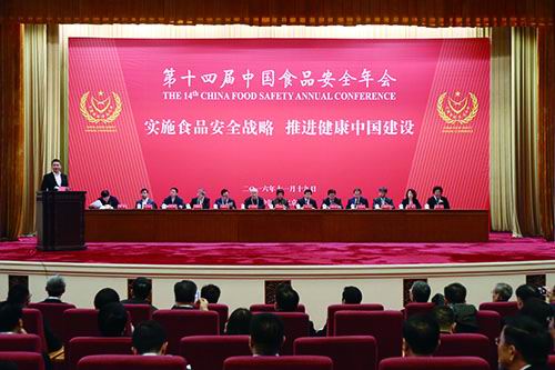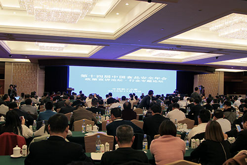 十届全国人大常委会副委员长、中国关工委主任、中国食品安全年会组委会名誉主任顾秀莲,国家工商总局、农业部、工业和信息化部、海关总署、质检总局、中国食品工业协会等领导出席会议并致辞。与会企业家代表集体宣读《食品安全誓词》——“始终坚持科学发展观,忠诚履行社会责任;坚决遵守政策法规,严格执行行业标准;积极配合政府执法,主动接受社会监督;建立健全诚信体系,执着追求高端品质;模范践行职业道德,自觉固守行业自律;矢志确保食品安全,共筑美丽‘中国梦’”。