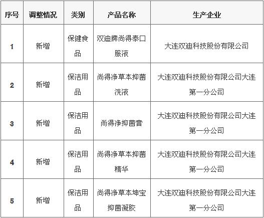 商务部网站公示大连双迪新增5款直销产品