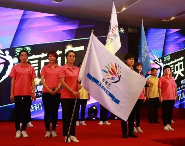 北京罗麦菁英汇副秘书长王芳芳女士向湖北宜昌分会长贺靖女士授旗,湖北宜昌分会在大家的欢呼中正式成立了!