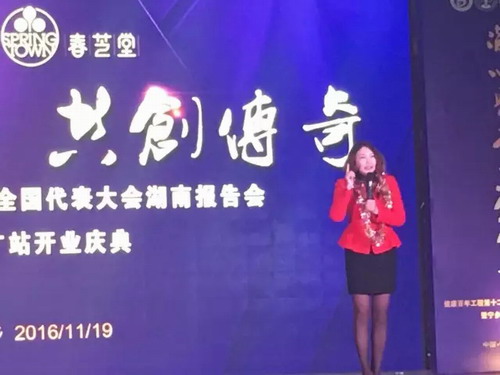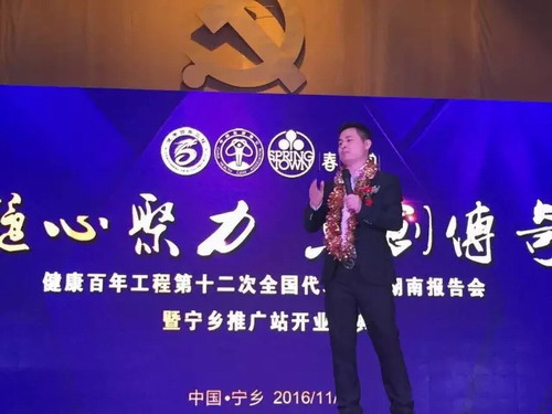 2016年11月19日下午,“健康百年工程第十二次全国代表大会湖南报告会”在开国元勋刘少奇的故居—湖南宁乡隆重举行,春芝堂集团董事长王爱兴先生、营销中心总经理曾年年女士、湖南分公司经理郑敬之先生以及来自三湘四水的600多位春芝堂家人们在此汇聚一堂,共同分享收获的成功与喜悦。伴随着铿锵有力、磅礴大气的鼓舞,会议拉开了帷幕。