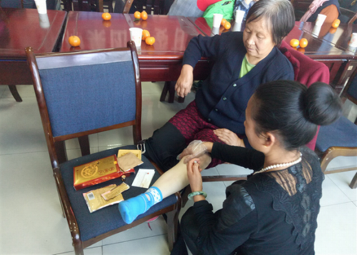 离休老人现场体验太阳疚产品