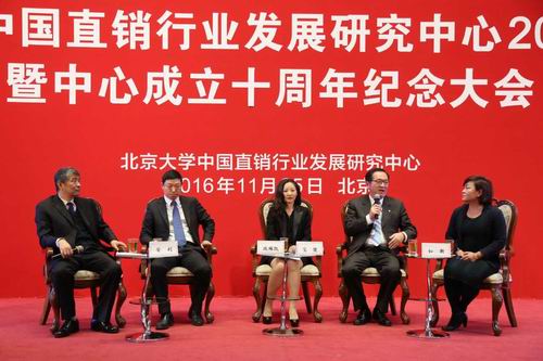 11月25日,由北京大学中国直销行业发展研究中心主办的2016北大直销年会在北京大学召开,本届年会的主题是“社交商业与直销的未来”。 商务部、国家工商总局及国务院法制办等政府监管部门的代表,原北京大学副校长、北京大学汇丰商学院院长兼北京大学中国直销行业发展研究中心主任海闻,北京大学中国直销行业发展研究中心副主任王雨本、北京大学汇丰商学院教授魏炜,安利(中国)日用品有限公司总裁黄德荫,腾讯公共战略委员会办公室总监兼腾讯研究院互联网+创新研究中心秘书长崔书锋等多位专家和30余家企业代表出席了论坛。