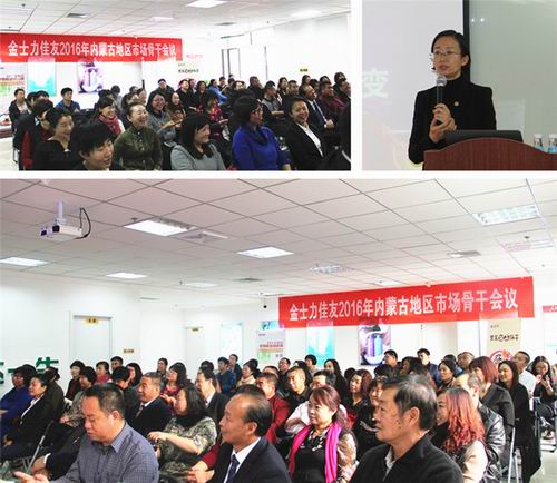 11月29日,金士力佳友内蒙古市场骨干会议在内蒙古分公司会议室召开。金士力佳友东北大区销售总监潘爱国先生、市场部产品经理华广磊先生、内蒙古分公司经理赵岩先生,绩优经销商代表高永平先生、田福平女士、海英女士、海花女士以及来自东北大区内蒙古市场的近百名市场骨干参加了本次会议。