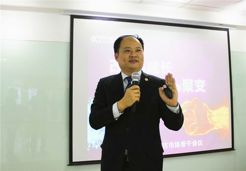 本次会议由内蒙古分公司赵岩经理主持。首先,东北大区潘爱国总监为市场骨干带来了事业心态分享,潘总以和为贵的家庭理念为开端,与各位市场骨干分享了经营家庭与经营市场是互通互助的理念。接下来,潘总围绕创客背后的价值为市场骨干们做了主题讲解,深入解析创客为团队、市场骨干带来的价值。