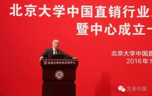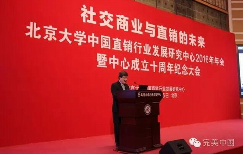 11月25日,“社交商业和直销的未来”论坛在北京大学召开。该论坛由北京大学中国直销行业发展研究中心主办。北京大学、中央财经大学、腾讯研究院、中国电子商会协会等专家学者,与国内直销企业代表们一起探讨社交商业发展所引起的市场环境变化,以及对直销行业的影响。完美公司总裁胡瑞连应邀出席论坛。