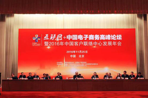由中国商业联合会、中国电子商务协会、中国电子商务协会客户联络中心专业委员会共同举办的“2016互联网+中国电子商务高峰论坛暨中国客户联络中心行业发展年会”于2016年11月25-27日在京召开,大会开幕式于25日在人民大会堂隆重举行。