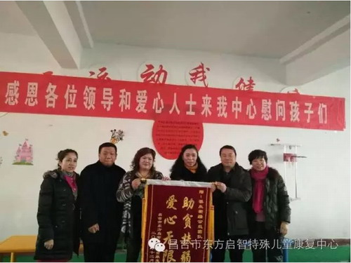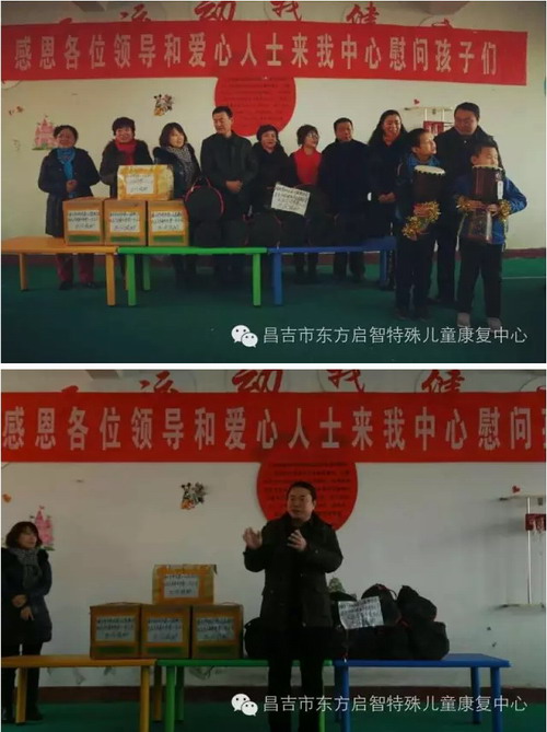 2016年12月01日,荟生健康产业有限公司新疆领导人张群芳、新疆自治区残联基金会的董主任和王主任、残友联合会的王芳会长等一行人带着他们的爱心团队,迎着风雪冒着严寒,带着丰厚的礼物,在第24个残疾日来临之际走进昌吉东方启智特殊儿童康复中心,慰问这里的孩子们。