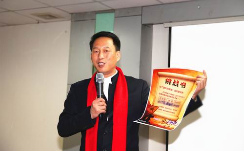 会议最后,绩优经销商孙睿先生登台激情分享,诠释了公司创客计划的深远意义,希望大家以公司平台做依托,改变观念,领悟创客精神,并率先垂范展示市场创客计划挑战书,将带领团队成员利用公司利好政策,全力以赴完成制定的目标!