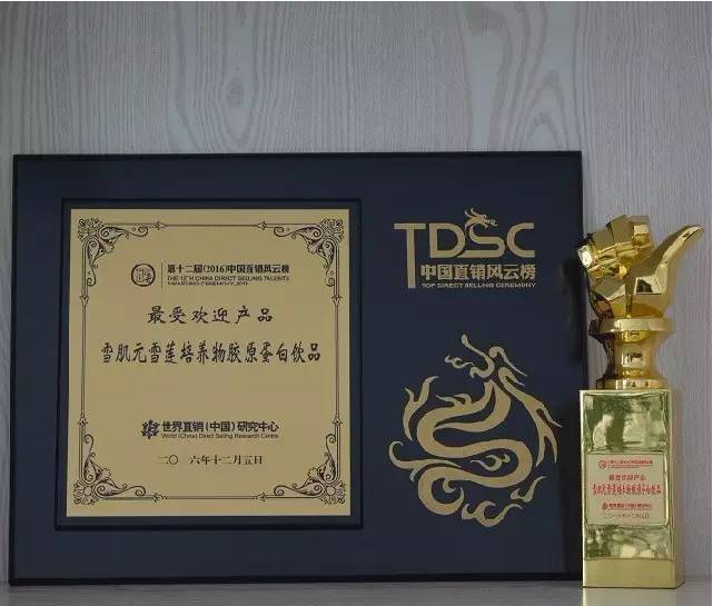 值得一提的是,康美直销的雪肌元雪莲培养物胶原蛋白饮品,也获颁“2016年度中国直销最受欢迎产品”大奖,成为本届盛典上的明星产品。