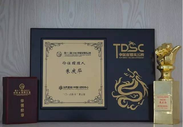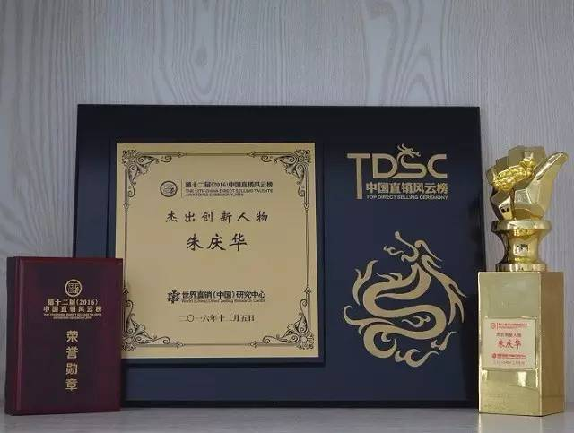 在本次盛典上,总经理朱庆华也荣获“2016年度中国直销杰出创新人物”和“2016年度中国直销价值经理人”两项殊荣。