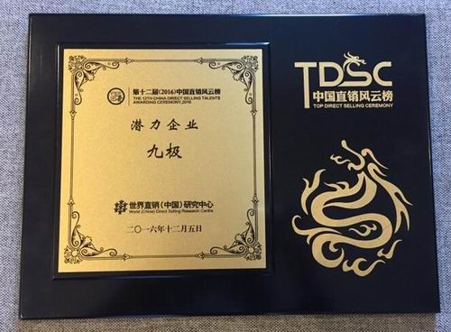经过三个月的评选,九极公司在本次超过4000人的会议上获得了年度中国直销潜力企业的荣誉;